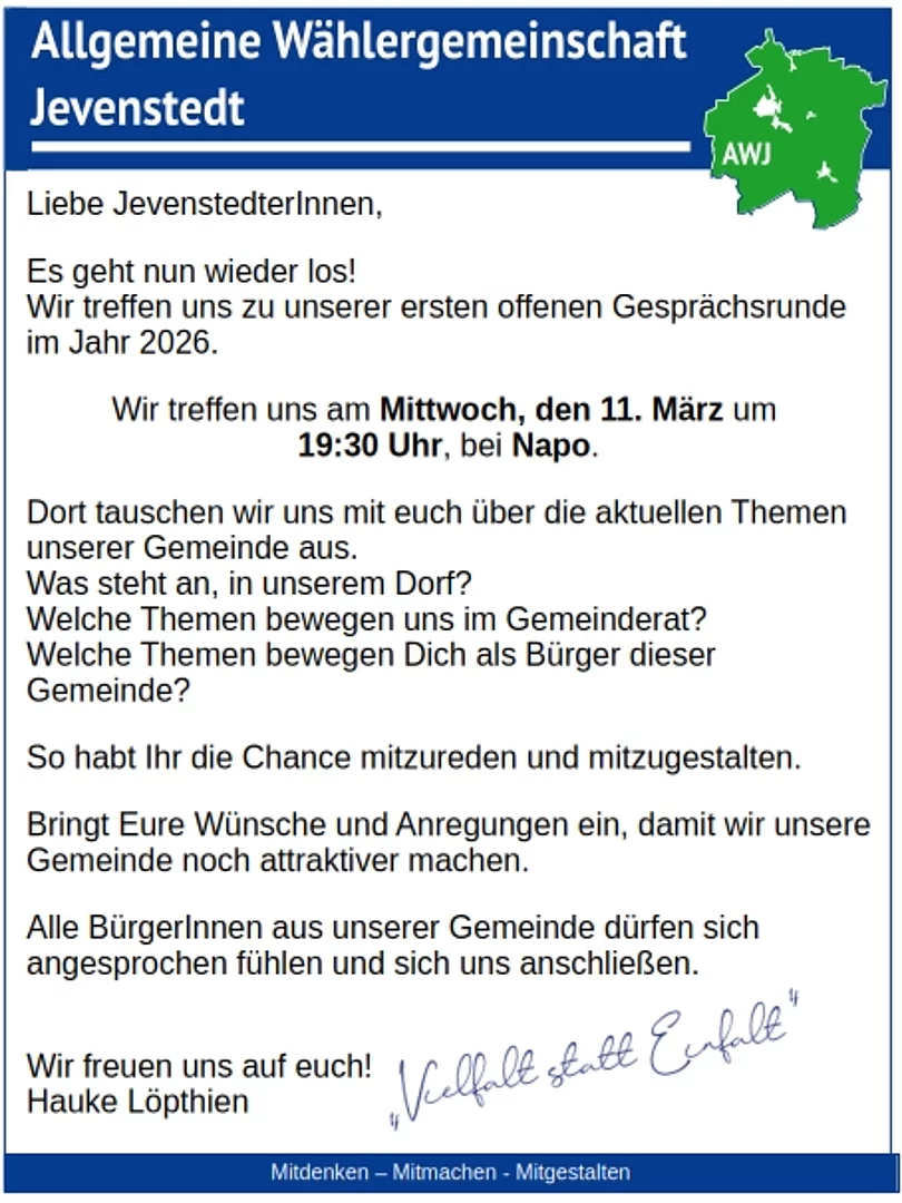 Liebe JevenstedterInnen,